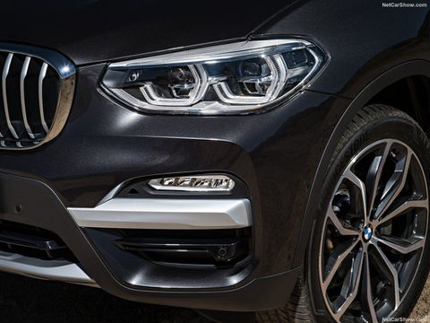 Về thiết kế, BMW X3 2018 thừa hưởng khá nhiều đường nét từ đàn anh X5. Xe sở hữu lưới tản nhiệt rộng hơn với các thanh dầm dọc dày hơn. Cụm đèn pha LED được tinh chỉnh, đèn sương mù thiết kế hình lục giác đầu tiên xuất hiện trên một mẫu xe dòng X. Bên cạnh đó, một số chi tiết khác như cản gầm, hốc gió cũng được điều chỉnh đem lại một diện mạo cứng cáp hơn cho X3. Phía sau, đèn hậu dạng LED tùy chọn full-LED 3D, đuôi lướt gió và cản gầm được làm mới. Ống xả kép đối xứng hai bên nhấn mạnh thêm vẻ thể thao cho X3.