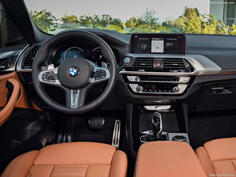 Phía bên trong, bảng điều khiển trung tâm được thiết kế hình lục giác cỡ lớn với hệ thống nút điều khiển mới. Tương tự 5-Series, X3 sẽ có 6 tùy chọn màu sắc ánh sáng nội thất, 8 tùy chọn mùi hương khác nhau cho hệ thống điều hòa tự động. Phía sau, hàng ghế thứ hai được cải thiện đem lại không gian thoải mái hơn, có thể gập theo tỉ lệ 40:20:40. Thể tích khoang hành lý 550 lít và lên đến 1.600 lít khi gập hàng ghế thứ hai.