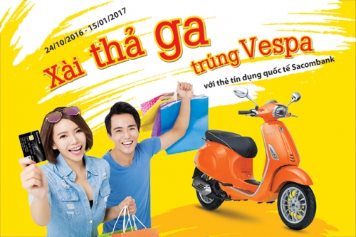 "Cơ hội trúng Vespa" dành cho chủ thẻ tín dụng quốc tế Sacombank