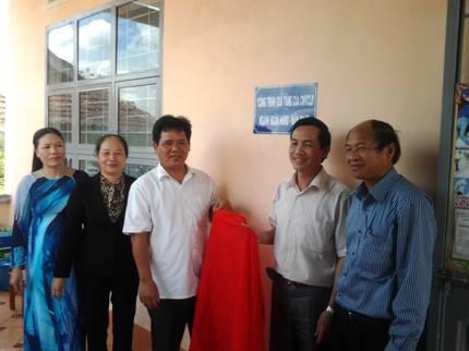 Đ/c Nguyễn Vũ Bình, Phó chủ tịch Công đoàn Ngân hàng Việt Nam (thứ 2 từ phải sang) bàn giao phòng học Mẫu giáo