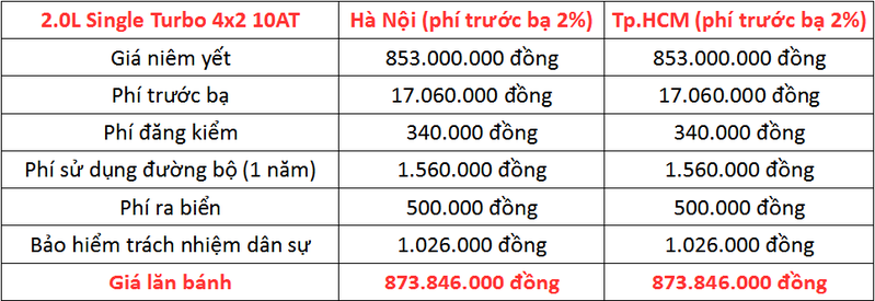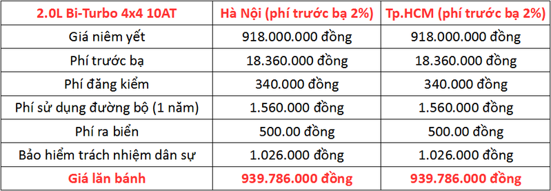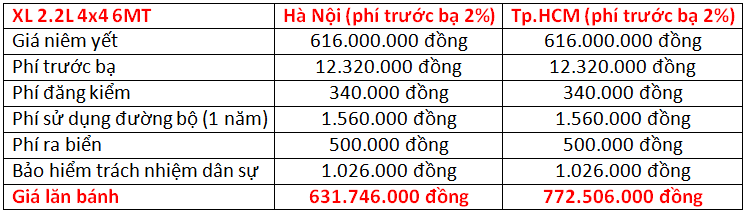 Giá lăn bánh chính thức của các phiên bản Ford Ranger 2019, đối thủ của Toyota Hilux, Chevrolet Colorado, Mitsubishi Triton và Isuzu D-Max.