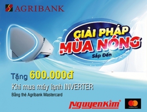 Từ nay đến hết ngày 20/04/2017, khách hàng là chủ thẻ Agribank Mastercard được giảm ngay 600.000 đồng khi mua khi mua máy lạnh công nghệ INVERTER và thanh toán 100% bằng thẻ Agribank Mastercard tại các Siêu thị điện máy Nguyễn Kim.