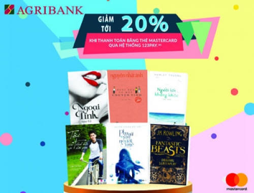 Từ nay đến hết ngày 11/11/2016, khách hàng được tặng ưu đãi giảm giá 20% khi đặt mua sản phẩm/dịch vụ trên Website www.fahasa.com và thực hiện thanh toán trực tuyến bằng thẻ Agribank MasterCard qua cổng thanh toán trực tuyến 123Pay. Mỗi thẻ Agribank MasterCard được tham dự 03 (Ba) lần khuyến mại và mức giảm giá tối đa không quá 500.000 đồng trên một đơn hàng.