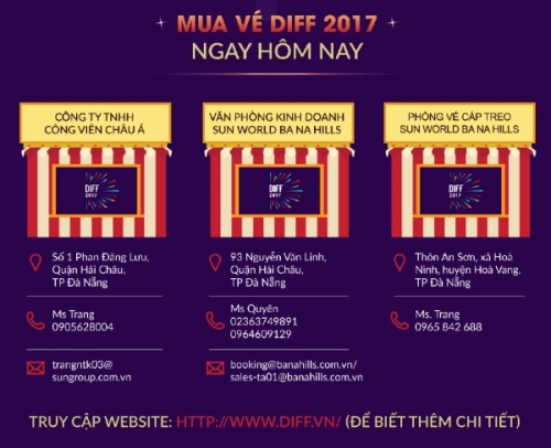 Theo đó, các khinh khí cầu mang logo và banner của DIFF 2017 và của thành phố Đà Nẵng dự kiến sẽ trình diễn bay từ Công viên Biển Đông tới công viên Sun World Danang Wonders (Asia Park) trong thời gian từ 6:30- 7:30 sáng các ngày từ 27/4- 30/4.