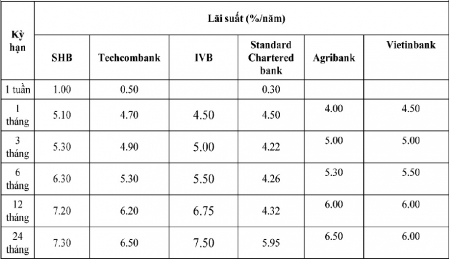 Biểu lãi suất tiền gửi tiết kiệm một số ngân hàng