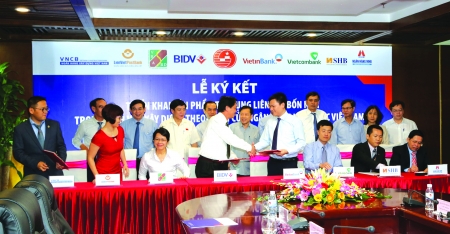 8 ngân hàng tham gia liên kết 4 nhà gồm: BIDV, Agribank, VietinBank, VCB, VNCB, SHB, LienVietPostBank và MHB. Việc hợp tác triển khai sản phẩm tín dụng mới hiệu quả, có độ an toàn cao nhằm tháo gỡ khó khăn cho DN, hỗ trợ thị trường, giảm nợ xấu.