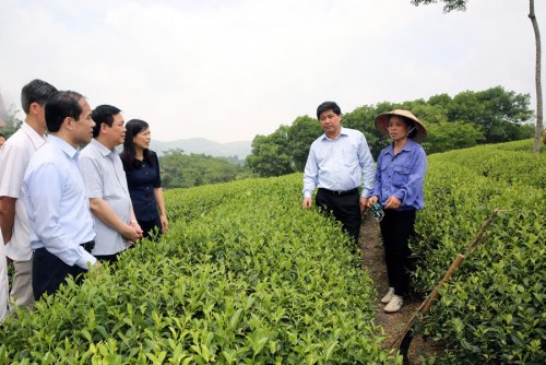 Phó Thủ tướng Vương Đình Huệ thăm mô hình sản xuất chè theo chuỗi ở huyện Sơn Dương, tỉnh Tuyên Quang
