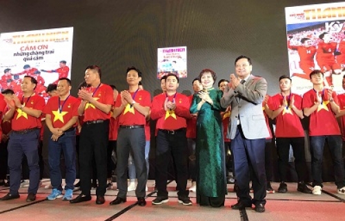Bà Cao Thị Ngọc Dung – Tổng giám đốc PNJ, ông Bùi Quang Huy (Bí thư Trung ương Đoàn TNCS HCM), ông Trần Đức Phấn (Phó Tổng cục trưởng Tổng cục thể dục thể thao), ông Nguyễn Công Khế (Chủ tịch HĐQT Công ty CP Tập đoàn Truyền thông Báo Thanh Niên) đã trao tặng Huy chương “Niềm Tin Vàng” cho các tuyển thủ U23 Việt Nam.