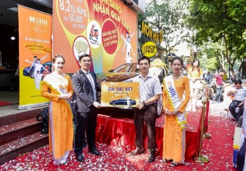 Trước đó, trong Lễ quay thưởng cuối kỳ, dưới sự chứng kiến của đại diện Cục xúc tiến Thương mại, các khách hàng, SHB đã tìm ra được chủ nhân của chiếc xe Lexus ES250 trị giá gần 2,3 tỷ đồng và nhiều giải thưởng có giá trị khác. Tổng giá trị giải thưởng toàn bộ chương trình là hơn 8,2 tỷ đồng.