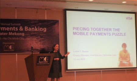 Tại Hội nghị Cấp cao Mekong Summit lần thứ III diễn ra vào ngày 12 - 13/7/2012 tại TP. Hồ Chí Minh, đại diện Công ty Visa đã chia sẻ nhận định về tiềm năng phát triển của công nghệ thanh toán qua điện thoại di động tại các thị trường mới nổi.