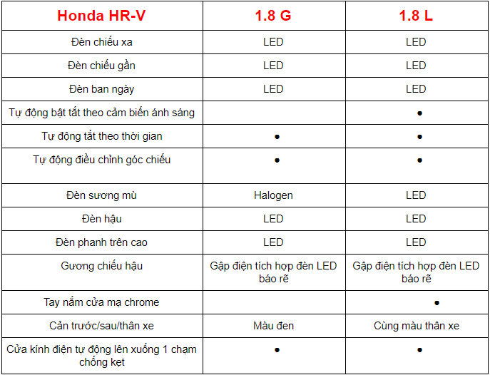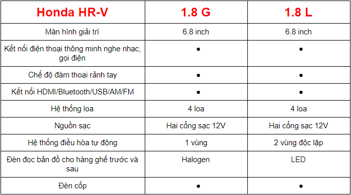 Mẫu crossover cỡ nhỏ HR-V 2018 hiện đang được Honda Việt Nam phân phối chính hãng với 2 biến thể là: 1.8 G (786 triệu đồng) và 1.8 L (866 triệu đồng). Với mức chênh 80 triệu, danh sách trang bị trên 2 phiên bản này sẽ khác nhau như thế nào ?