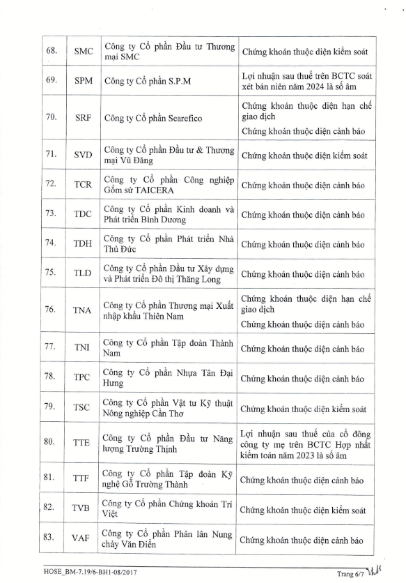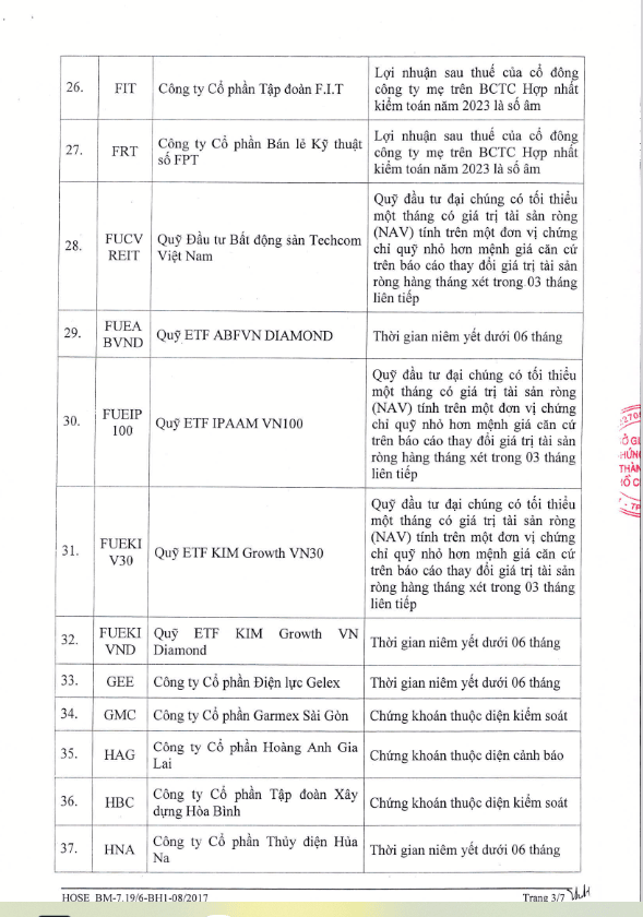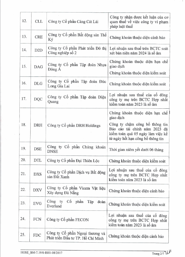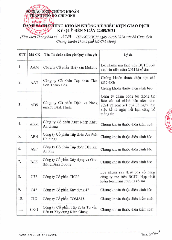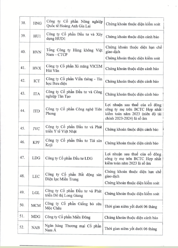 Một số thuộc diện chứng khoán bị cảnh báo hay kiểm soát cũng không được cấp margin như HAG, HBC, HNG, HVN, ASP, CIG, C47, DAG, JVC...
