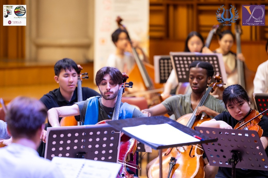 | Ngay khi đến Việt Nam, các thành viên của WYO và VNAMYO đã làm quen dàn nhạc và có lịch trình tập luyện dày đặc, sẵn sàng cho 2 buổi diễn |