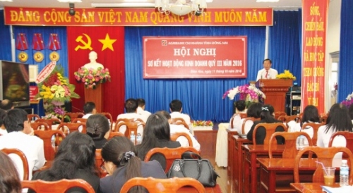 | Ông Nguyễn Huy Trinh - Giám đốc Agribank chi nhánh tỉnh Đồng Nai phát biểu tại hội nghị |