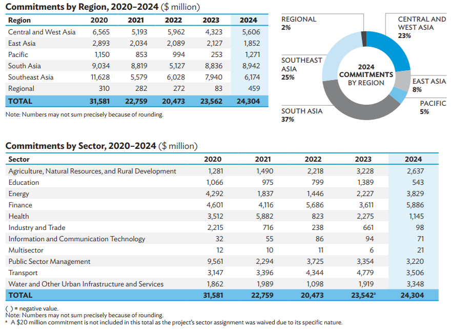 Để đạt được kết quả 1 triệu việc làm trực tiếp được tạo ra trong năm 2024, ADB đã cam kết 4,8 tỷ USD thông qua các dự án và chương trình cho khu vực tư nhân - tăng 28,5% so với năm 2023. Sự hợp tác với các chính phủ, tổ chức tài chính và nhà đầu tư đã hỗ trợ các môi trường kinh doanh thuận lợi, làm sâu sắc hơn các thị trường vốn và gia tăng hoạt động thương mại.