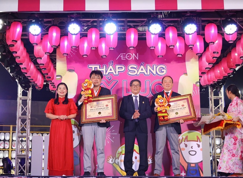 Mở đầu cho chuỗi hoạt động kỷ niệm 10 năm, vào ngày 23/7, AEON Việt Nam đã được Tổ chức Kỷ lục Việt Nam (VIETKINGS) chính thức xác lập kỷ lục cho “Tháp lồng đèn cao nhất Việt Nam” được trang trí bởi 216 chiếc đồng đèn kiểu Nhật và “Bức tranh lồng đèn lớn nhất Việt Nam” từ 2.304 chiếc lồng đèn có màu sắc và họa tiết đa dạng, nổi bật thông điệp “AEON chào đón 2.000.000 thành viên”.