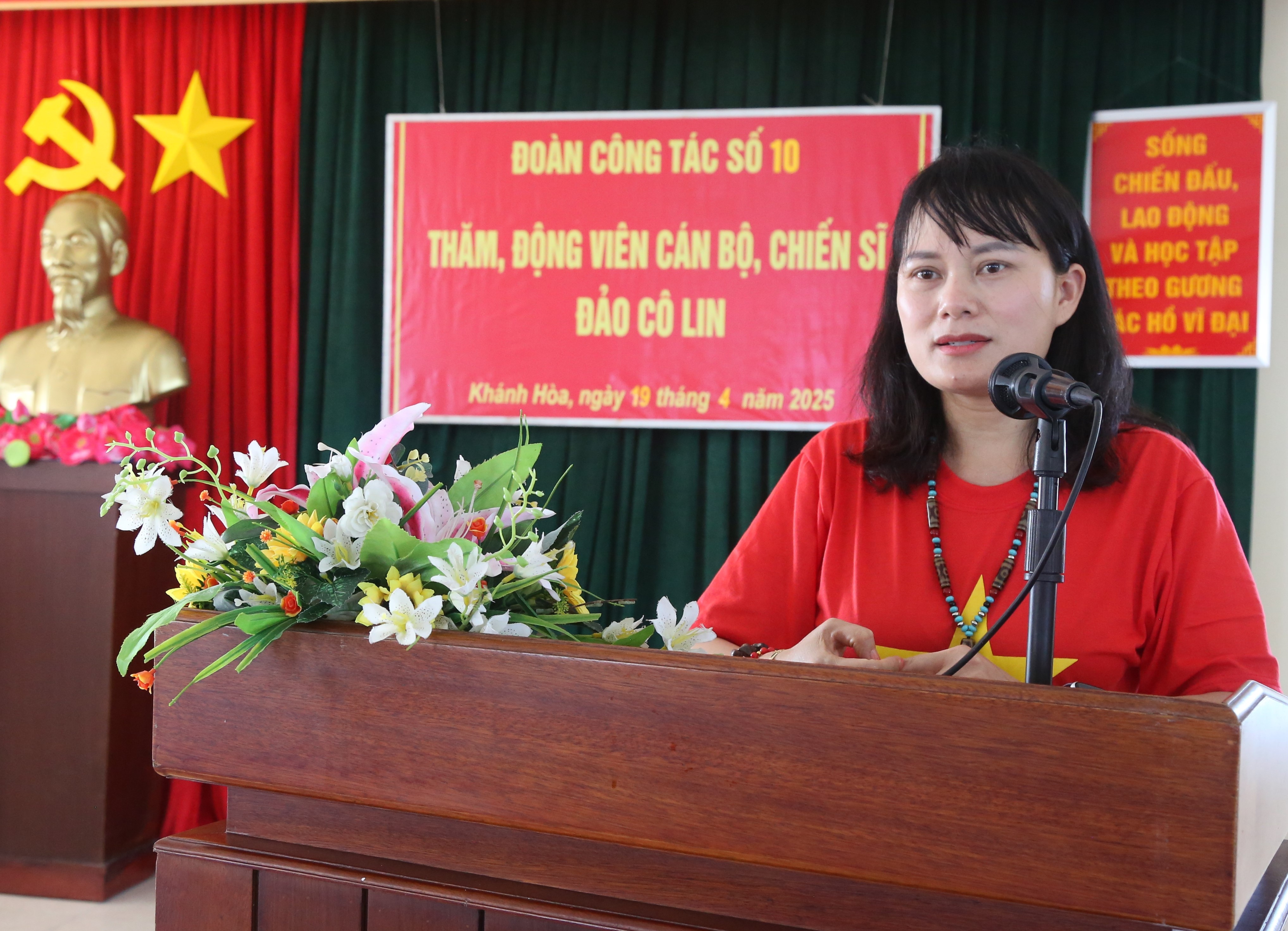 Tại đảo Cô Lin - nơi từng chứng kiến trận hải chiến bi hùng năm 1988, đồng chí Phùng Thị Bình chia sẻ: “Đứng trên mảnh đất thiêng liêng của đảo Cô Lin, chúng tôi không chỉ cảm nhận được sự kiên cường của các chiến sĩ mà còn thấu hiểu sâu sắc giá trị của hòa bình và chủ quyền. Chúng tôi vô cùng khâm phục tinh thần vượt khó, sự kiên cường và nỗ lực không ngừng nghỉ của cán bộ, chiến sĩ Đảo Colin. Trong điều kiện thiên nhiên khắc nghiệt, giữa muôn trùng sóng gió và những thách thức không ngừng từ tình hình biển đảo, các đồng chí vẫn vững vàng nơi đầu sóng, luôn hoàn thành xuất sắc nhiệm vụ được giao”.