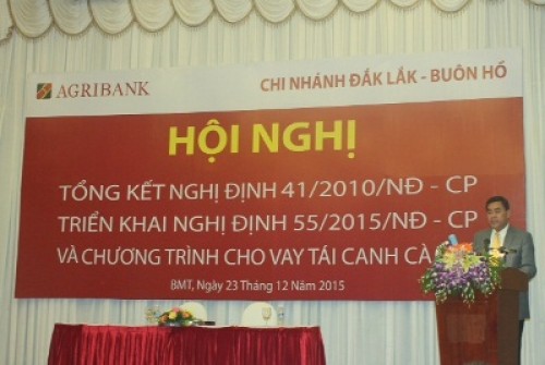 Mới đây, tại TP. Buôn Ma Thuột, tỉnh Đắk Lắk, Agribank Đắk Lắk và Agribank Buôn Hồ đã đồng tổ chức Hội nghị tổng kết 5 năm thực hiện Nghị định 41/2010/NĐ-CP (Nghị định 41), triển khai Nghị định 55/2015/NĐ-CP (Nghị định 55) về “Chính sách tín dụng phục vụ phát triển nông nghiệp, nông thôn” và sơ kết 3 năm thực hiện chương trình cho vay tái canh cà phê.
