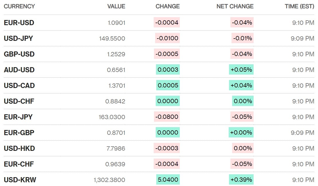Đồng yên Nhật tăng 0,01% lên 149,55 yên đổi một USD. Đồng tiền này đã dần thoát khỏi mức thấp gần 33 năm là 151,92 yên đổi một USD vào đầu tuần trước và tăng 1,5% kể từ đầu tháng.