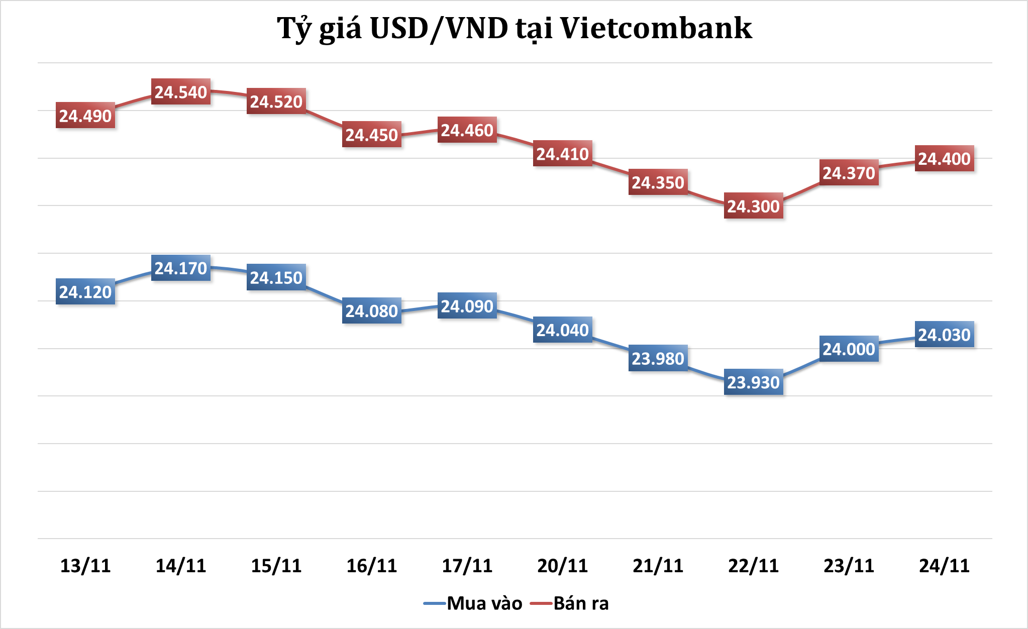 Đường dẫn bài viết: https://thoibaonganhang.vn/ty-gia-sang-2411-ty-gia-trung-tam-tang-12-dong-146691.htmlIn bài viết