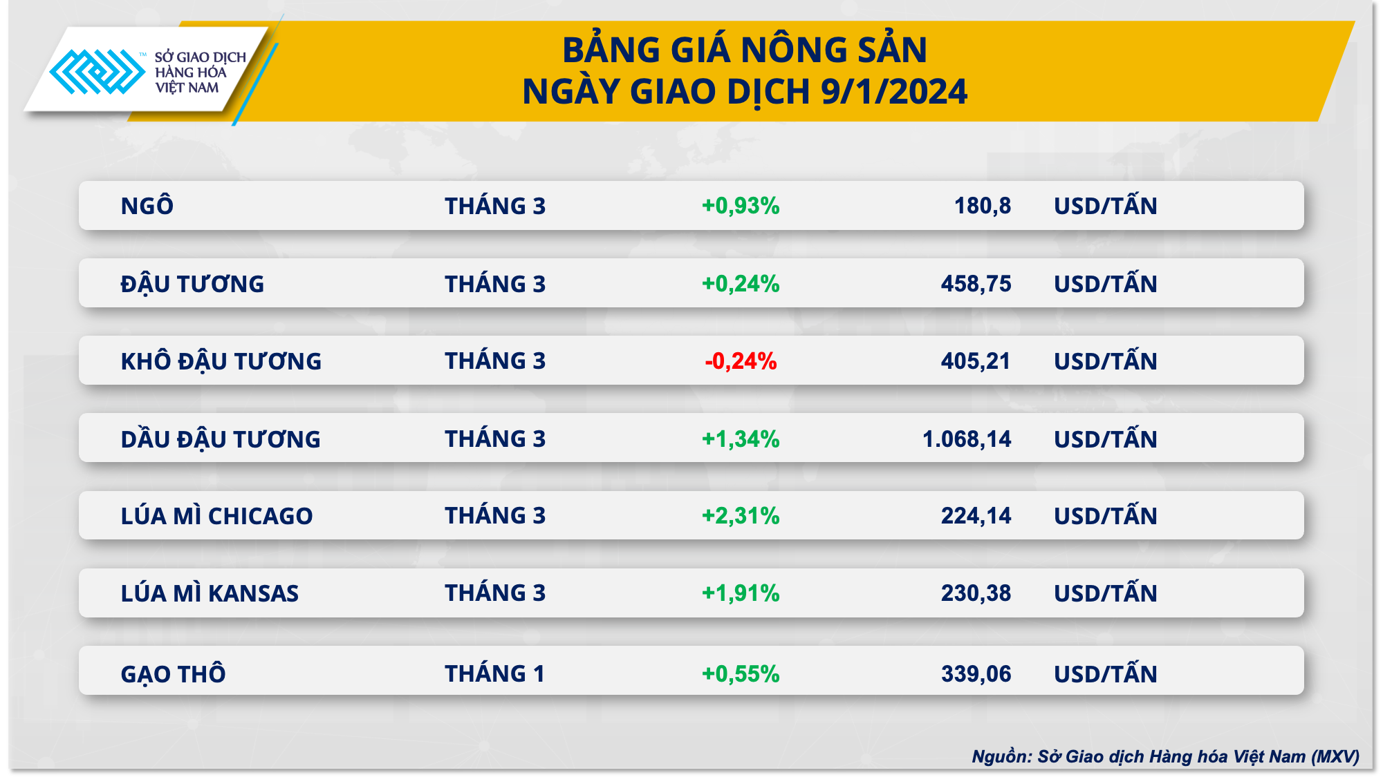 Đáng chú ý, ngày hôm qua, giá của các mặt hàng nhóm nông sản, năng lượng và nguyên liệu công nghiệp đồng loạt tăng.