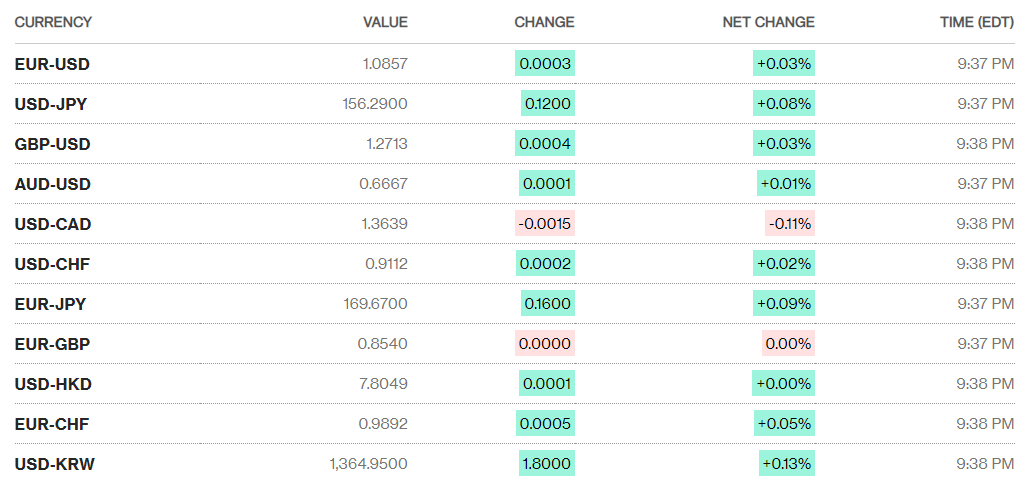 So với yên Nhật, bạc xanh sáng nay tăng 0,08% lên 156,29 JPY/USD, do các nhà đầu tư đang cân nhắc xu hướng của cặp tiền tệ này.