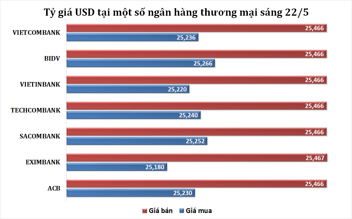 Trong khi đó, giá bán USD được hầu hết các ngân hàng điều chỉnh lên mức 25.466 VND/USD.