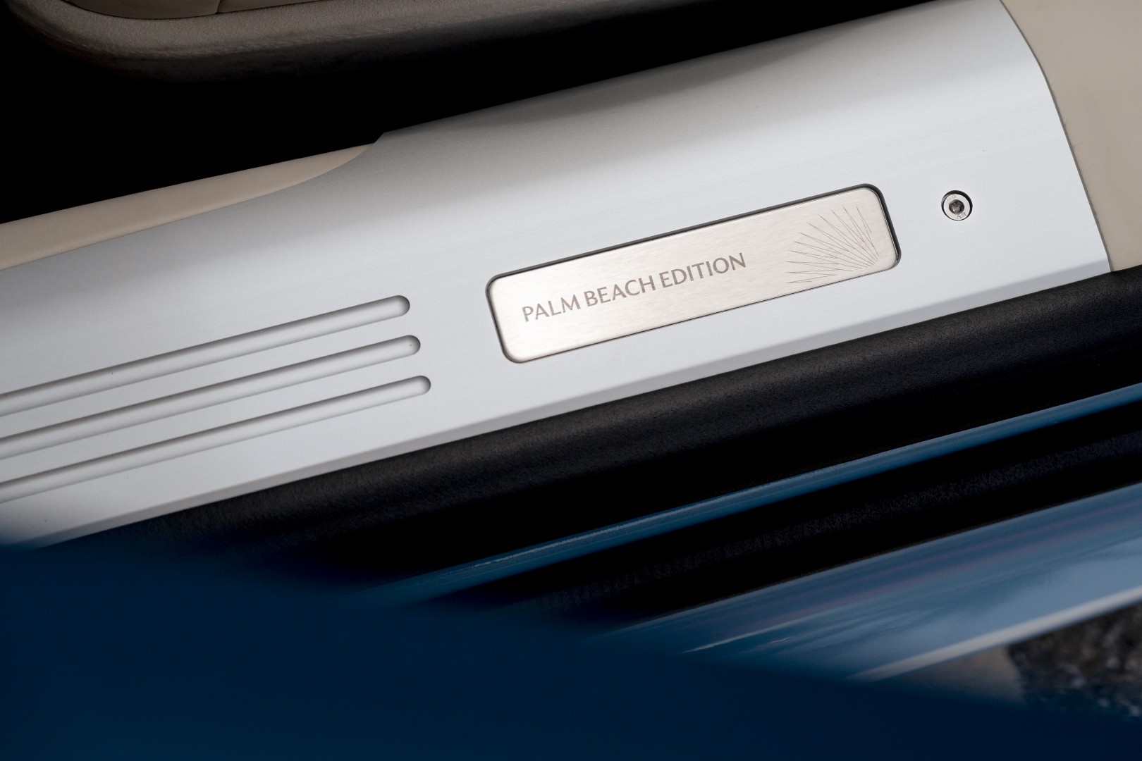 Họa tiết này tiếp tục xuất hiện ở ngoại thất thông qua các thanh bên nhôm gia công theo kiểu sọc lá cọ. Phía sau lưng ghế trước, các tấm gỗ mỏng khắc hoa văn lá cọ cùng dòng chữ "Palm Beach" hoàn thiện vẻ sang trọng.