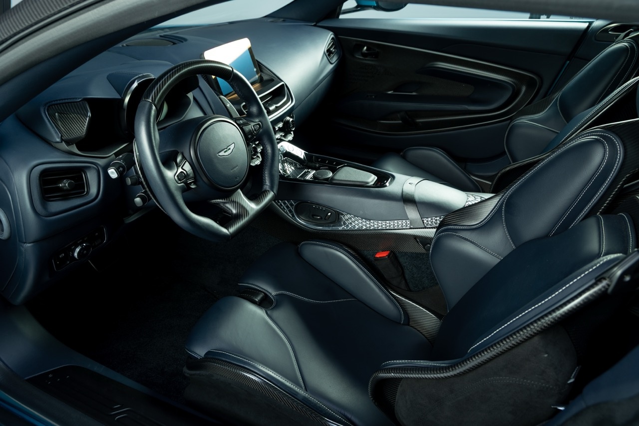 Khoang nội thất của xe được bọc da Dark Knight đơn sắc, logo Zagato thêu trên tựa đầu. Bên cạnh đó, đây cũng là lần đầu tiên, Aston Martin áp dụng nhiều chi tiết sợi carbon và kim loại in 3D trong cabin, bao gồm lớp hoàn thiện in 3D màu bạc – một trong những chi tiết tạo nên giá trị sưu tầm đặc biệt cho mẫu xe này.