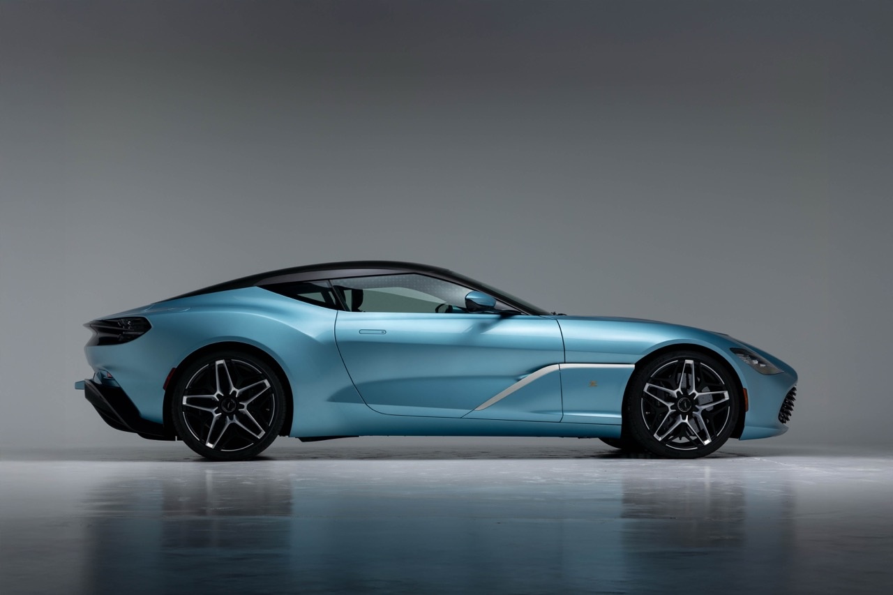 Mẫu xe còn lại trong bộ sưu tập là Aston Martin DBS GT Zagato, được phát triển dựa trên mẫu DBS Superleggera và cũng được khoác lên tông màu Caribbean Blue. Việc tái thiết kế một mẫu xe vốn đã hoàn thiện là thách thức lớn, nhưng Zagato tiếp tục thể hiện dấu ấn riêng thông qua các chi tiết đặc trưng, nổi bật là mái “double-bubble” – yếu tố mang tính biểu tượng vừa phục vụ khí động học, vừa tạo điểm nhấn thị giác rõ rệt. Kiểu dáng này tiếp tục xuất hiện trên nắp ca-pô, trong khi phần thân xe sử dụng sợi carbon kéo dài đến đuôi xe.