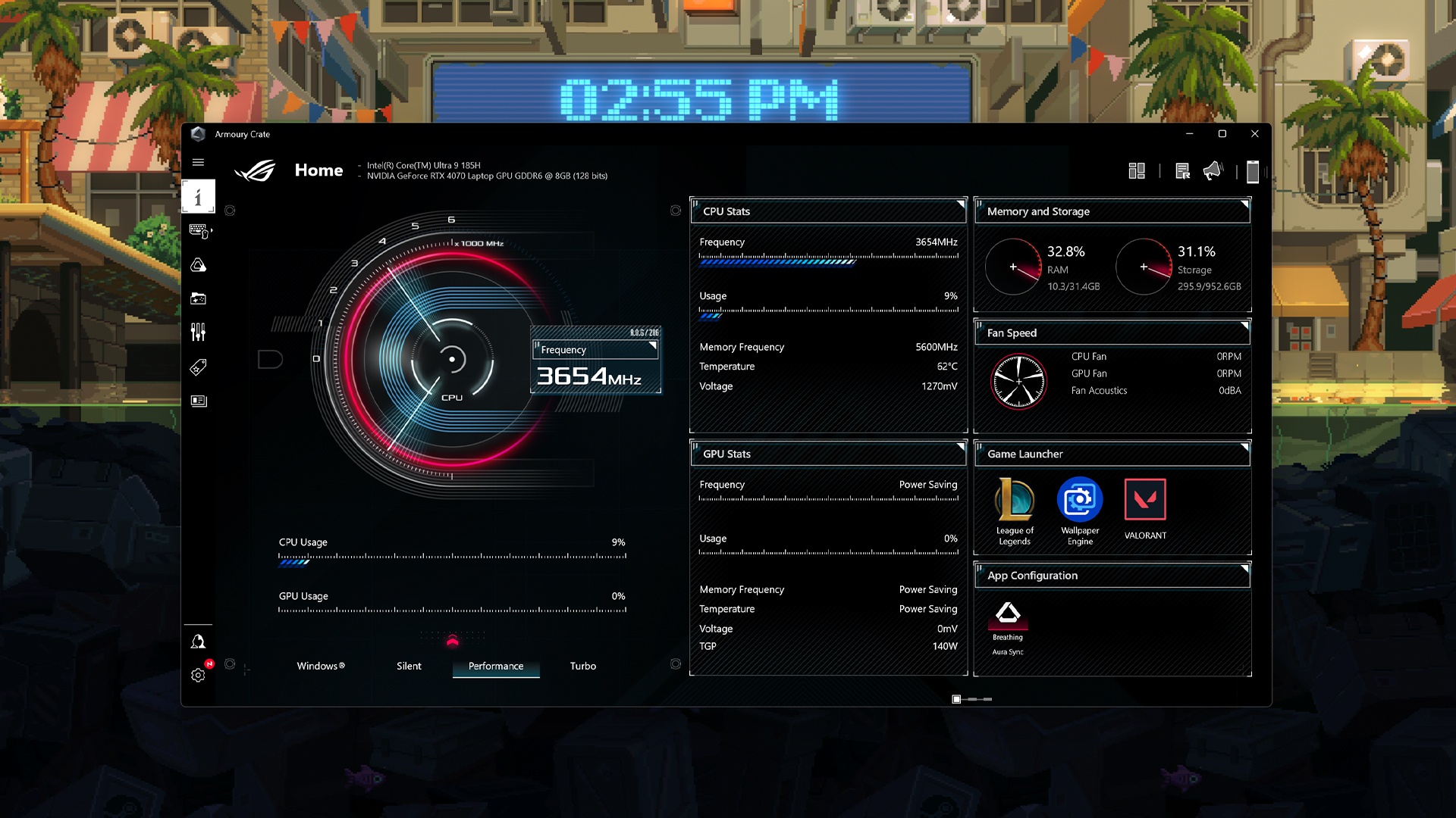 ASUS ROG NUC được cài sẵn hệ điều hành Windows 11. Bên trong, hãng vẫn tích hợp Armoury Crate, ứng dụng trung tâm điều khiển quen thuộc trên các sản phẩm gaming của ASUS ROG.