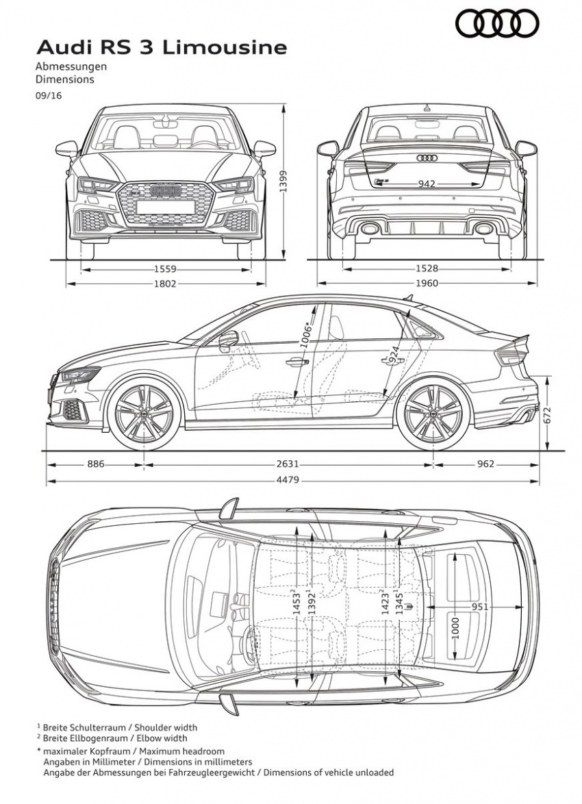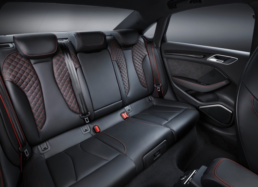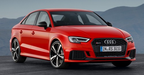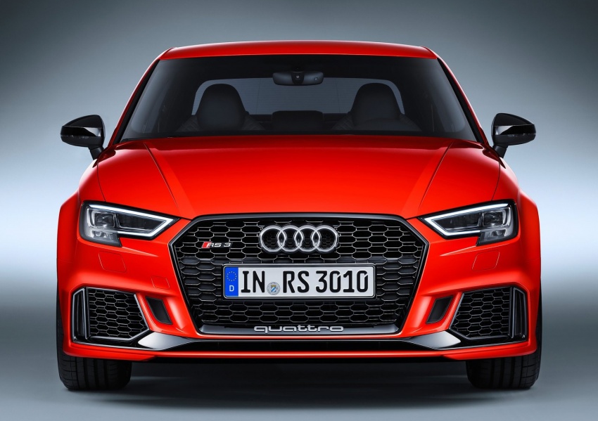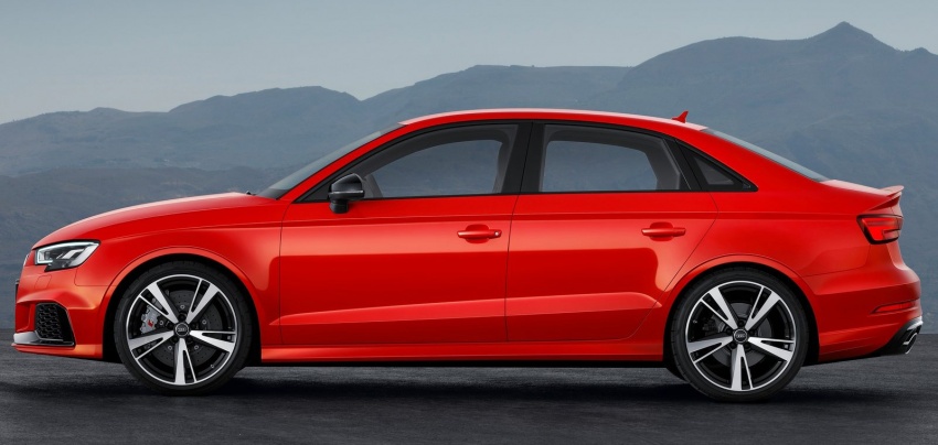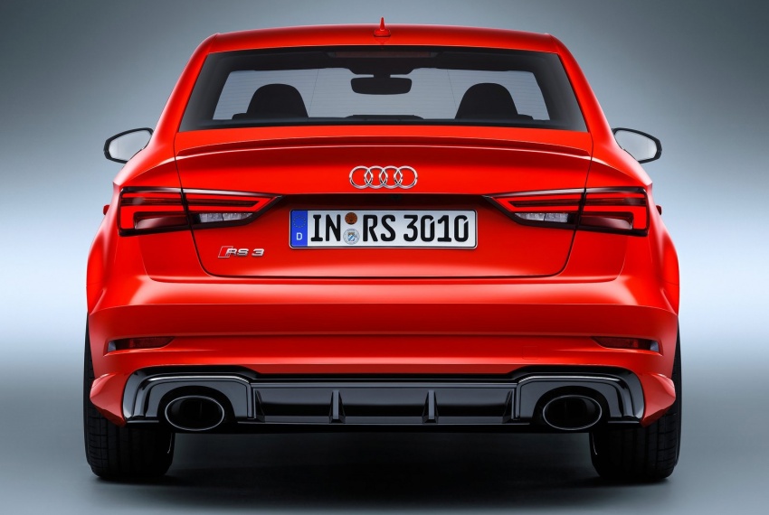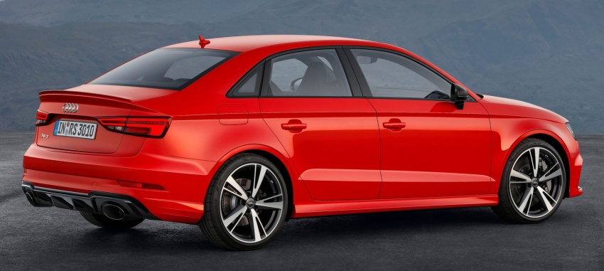 Về hình thức bên ngoài, RS3 Sedan có màu Xám Nardo và Hồng Catalunya, xe được thiết kế lưới tản nhiệt mới dạng tổ ong 3D, đèn pha LED ma trận, spoiler cố định trên nắp khởi động, bộ khuếch tán và ống xả lớn hình bầu dục ở phía sau...