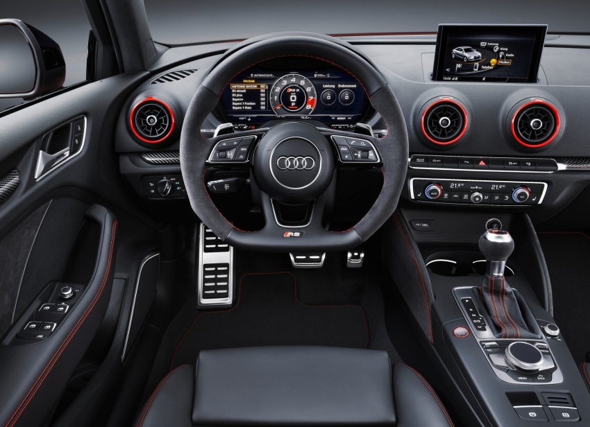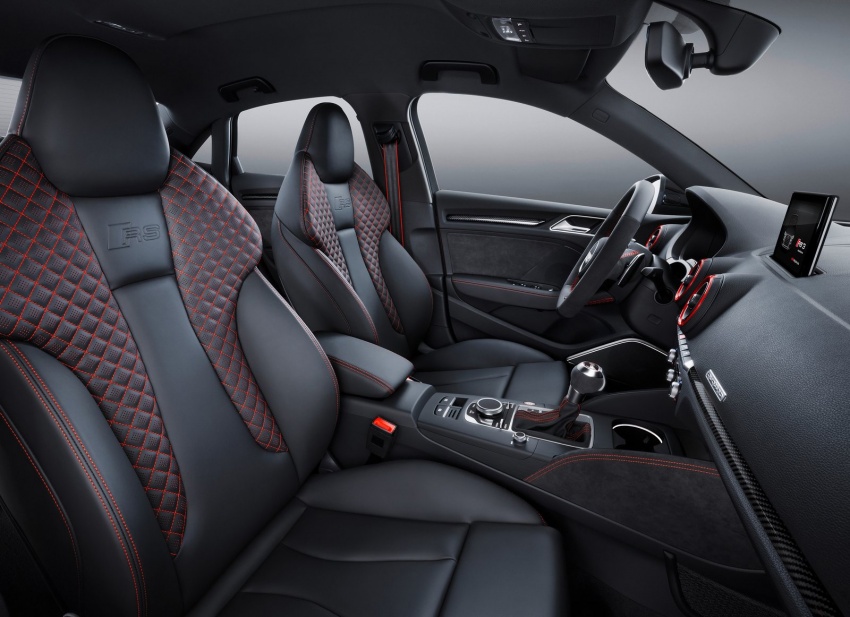 Bên trong nội thất, xe được trang bị ghế ngồi thể thao bằng da Nappa màu đen, với logo RS trên backrests, khách hàng cũng có thể lựa chọn ghế thể thao với thiết kế họa tiết đường viền hoa văn kim cương. Ở nơi khác, xe được trang bị hệ thống MMI cảm ứng có sẵn, cùng với một màn hình 7 inch mở rộng.
