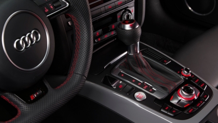 Bên trong nội thất, xe sử dụng chất liệu da cao cấp Nappa tuyệt đẹp với 2 màu đỏ - đen chủ đạo, bên cạnh đó là các đường chỉ khâu tay độc đáo. Xe vẫn sử dụng các công nghệ hiện đại như trên mẫu RS5 trước đó.