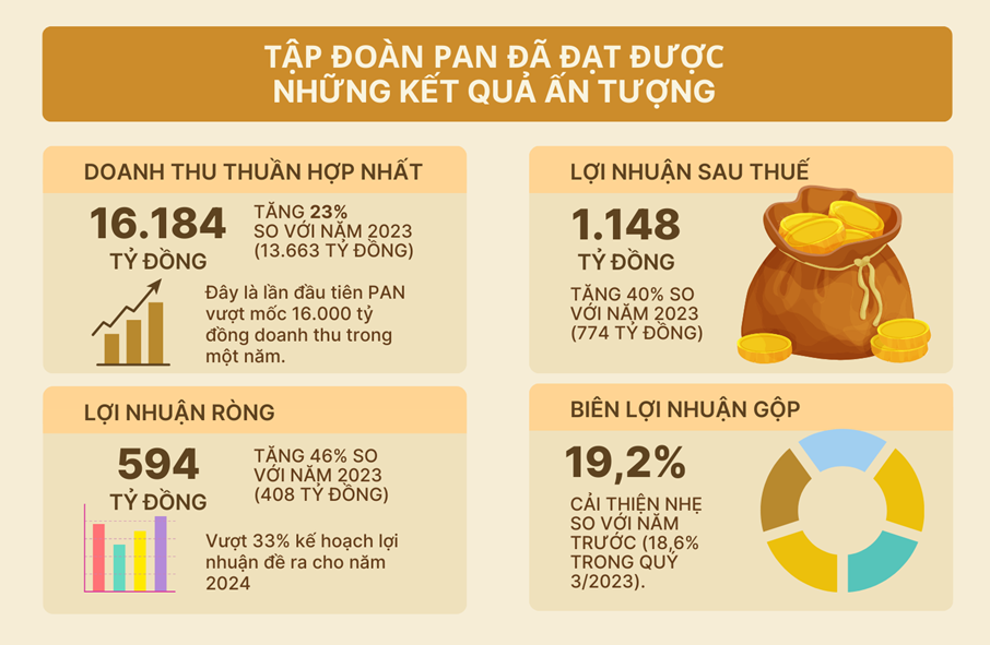 Thành tựu kinh doanh cũng nói lên tất cả. Năm 2024, PAN đạt doanh thu hợp nhất 16.000 tỷ đồng và lợi nhuận sau thuế lần đầu vượt mốc 1.400 tỷ đồng - kỷ lục cao nhất trong lịch sử tập đoàn. Đây là minh chứng rõ nét cho hiệu quả của quản trị công ty khi kết hợp cùng chiến lược phát triển bền vững (ESG), giúp PAN không chỉ nâng cao hiệu suất mà còn gia tăng sức hút với các quỹ đầu tư và ngân hàng quốc tế.