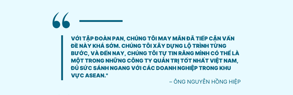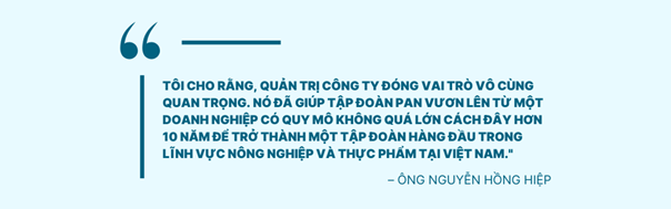 "Quản trị công ty là ‘xương sống’ đưa PAN từ một doanh nghiệp quy mô trung bình cách đây hơn 10 năm trở thành tập đoàn hàng đầu trong lĩnh vực nông nghiệp và thực phẩm tại Việt Nam", ông Nguyễn Hồng Hiệp khẳng định.