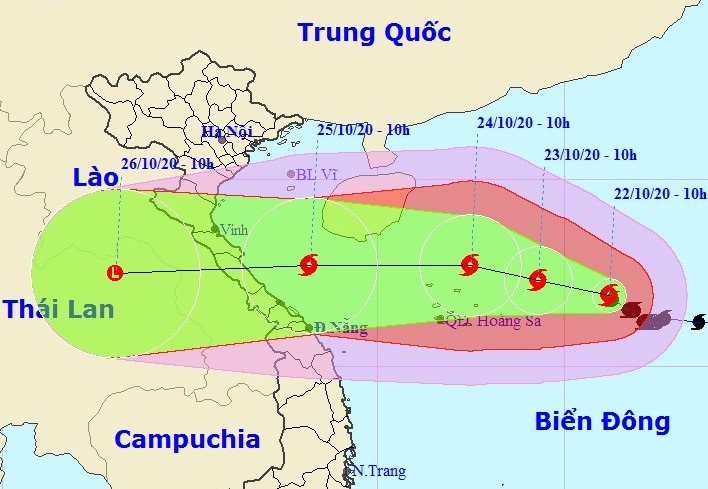 Theo Trung tâm Dự báo khí tượng thủy văn quốc gia, hồi 10 giờ ngày (22/10), vị trí tâm bão ở khoảng 16,9 độ Vĩ Bắc; 116,2 độ Kinh Đông, cách quần đảo Hoàng Sa khoảng 390km về phía Đông.