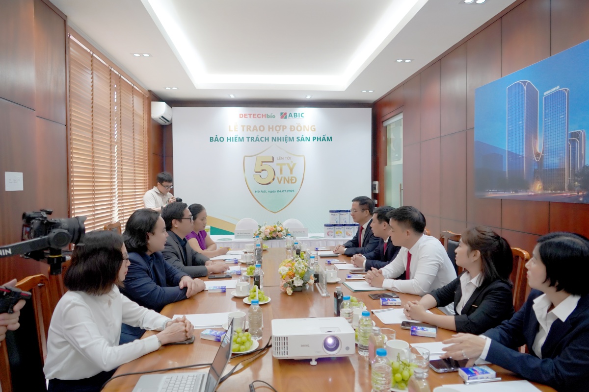 Đặc biệt, một điểm nhấn quan trọng trong hợp tác lần này là Lễ trao bảo hiểm trách nhiệm sản phẩm – giải pháp bảo hiểm toàn diện được thiết kế riêng nhằm bảo vệ Detech Bio trước các rủi ro pháp lý phát sinh từ việc khách hàng sử dụng sản phẩm sữa và thực phẩm dinh dưỡng do công ty phân phối.