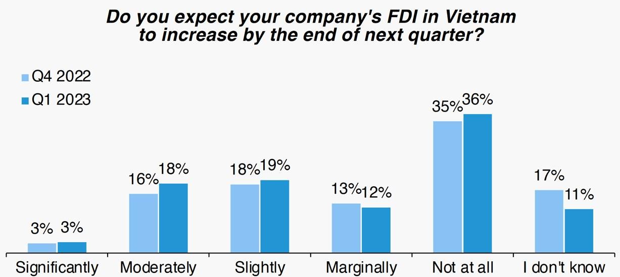 Việt Nam vẫn là điểm đến thu hút mạnh mẽ dòng vốn nước ngoài (FDI) trong mắt các lãnh đạo doanh nghiệp châu Âu, với hơn 3% các nhà lãnh đạo cho rằng Việt Nam là một trong ba trọng điểm đầu tư của họ trên toàn thế giới. Nhìn chung, 36% số người tham gia khảo sát xếp Việt Nam ở vị trí đầu tiên, trong top 3 hoặc trong top 5 điểm đến đầu tư hàng đầu của họ trên phạm vi toàn cầu.