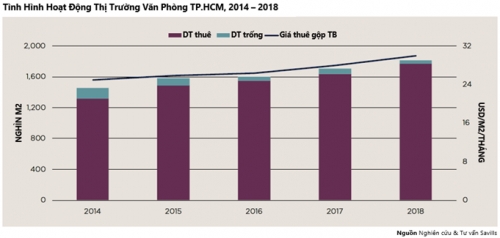 Bên cạnh đó, văn phòng tiếp tục là một trong những phân khúc BĐS hấp dẫn nhất trong khu vực. TP.HCM ghi nhận hoạt động thị trường văn phòng tốt nhất trong năm năm qua với giá thuê trung bình tăng 8% theo năm và công suất cho thuê rất cao tại mức 97%, trong khi đó Hà Nội cũng ghi nhận giá thuê gộp trung bình tăng 3% theo năm và hoạt động của Hạng A được cải thiện tại những khu vực ngoài trung tâm.