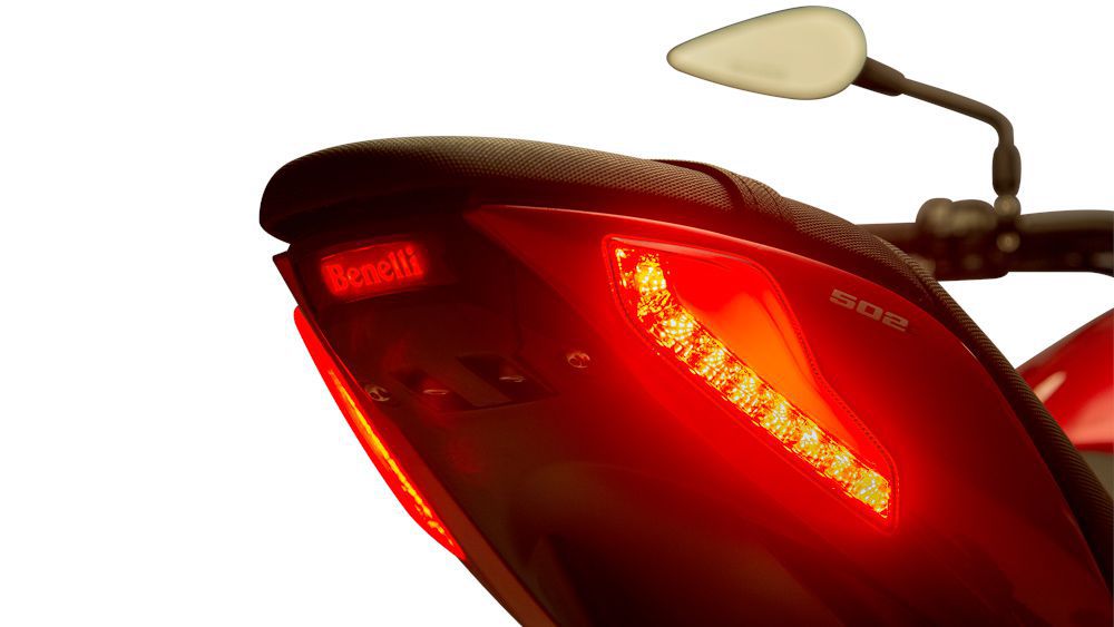 Đuôi xe vuốt nhọn, vè chắn bùn sau được dời xuống bánh xe theo thiết kế rời. Cụm đèn hậu được thiết kế tách đôi, ống xả đôi được đặt bên trái phối 2 tông màu. Trong khi đó, ghi đông xe được đẩy lên khá cao để tạo dáng ngồi đặc trưng của dòng xe cruiser. Yên xe Benelli 502C tách biệt cho người lái và người ngồi sau đem lại sự thoải mái khi di chuyển trên những chặng đường dài. Ngoài ra, 502C còn có chỗ để chân và thanh tay lái cao cũng góp phần làm cho việc lái xe trở nên nhẹ nhàng hơn.