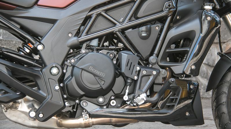 Mẫu cruiser nhà Benelli sử dụng hệ thống treo upside-down đường kính phuộc 41 mm ở bánh trước và phuộc sau monoshock có thể điều chỉnh được đến từ KYB. Phanh đĩa được trang bị cho cả bánh trước và sau kích thước lần lượt là 280mm và 240mm đi kèm là kẹp phanh Brembo. Trong khi đó phanh ABS của Bosch dành cho cả 2 bánh. Lốp xe kích thước 120/70ZR17 cho bánh trước và 160/60/ZR17 ở bánh sau đi kèm mâm xe 17 inch. Xe có trọng lượng 216 kg và dung tích bình xăng 21 lít.