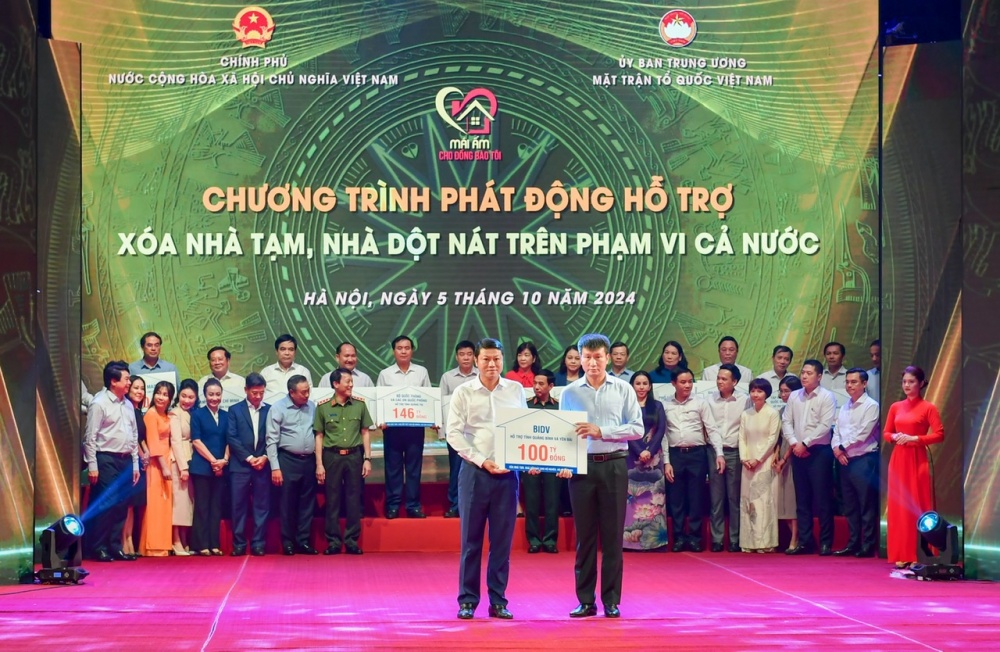 Hưởng ứng lời kêu gọi của Thủ tướng Chính phủ, tại lễ phát động, ông Đào Minh Tú - Phó Thống đốc thường trực Ngân hàng Nhà nước Việt Nam - đã đại diện ngành ngân hàng đã trao tặng tương trưng số tiền 1.000 tỷ đồng; ông Lê Ngọc Lâm - Tổng giám đốc BIDV - đã trao tặng tượng trưng số tiền 100 tỷ đồng để góp phần đem lại mái ấm cho đồng bào nghèo tại Yên Bái và Quảng Bình.