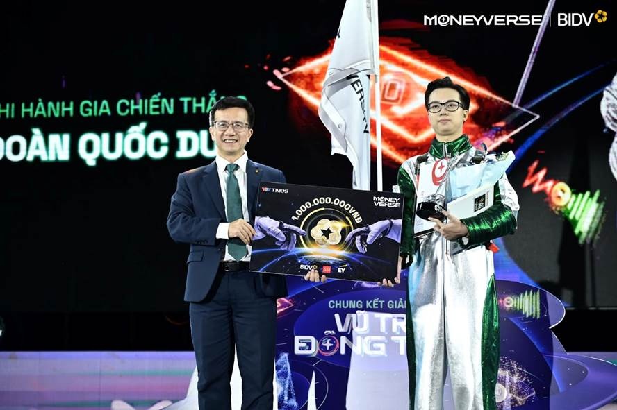 Đây không chỉ là chiến thắng cá nhân, mà còn là minh chứng sống động cho tiềm năng to lớn của những người trẻ dám mơ lớn, nghĩ xa và hành động quyết liệt. Khoảnh khắc đăng quang càng thêm phần ý nghĩa khi Tiến sĩ Nguyễn Việt Hà, Giám đốc Ban Truyền thông và Thương hiệu BIDV, trực tiếp trao tặng giải thưởng cao nhất – tấm thẻ BIDV Mastercard MoneyVerse với 1 tỷ đồng tiền thưởng – cho nhà vô địch, khẳng định vai trò tiên phong của BIDV trong hành trình đồng hành và phát triển thế hệ trẻ Việt Nam.