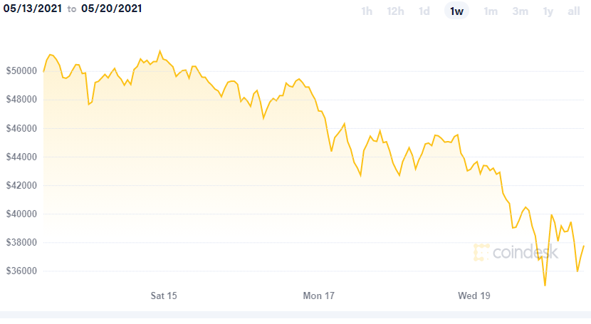 Đêm hôm qua (19/5) theo giờ Việt Nam, đồng bitcoin đã "lao dốc không phanh" xuống dưới 40.000 đô la, khiến mức lỗ trong hai tuần của nó lên gần 50%.