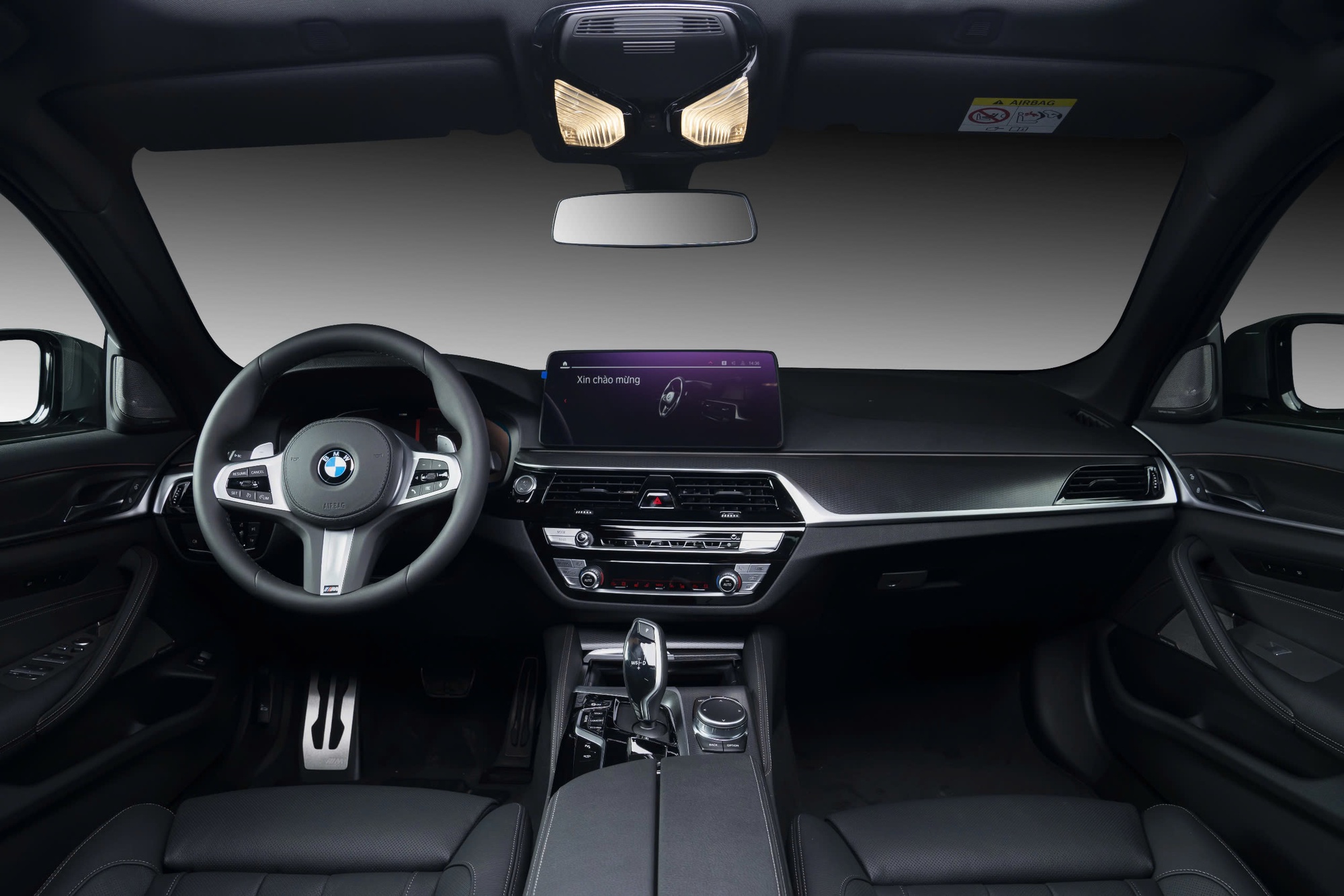 Nội thất xe hiện đại với màn hình giải trí trung tâm kích thước 12,3 inch. Vô-lăng 3 chấu tích hợp nhiều phím bấm chức năng và lẫy chuyển số thể thao. Ngoài ra, các hệ thống giải trí hiện đại kết nối Apple CarPlay và Android Auto không dây, đi kèm hệ thống điều khiển bằng giọng nói BMW Intelligent Voice Control, điều hòa 4 vùng, đèn viền nội thất...