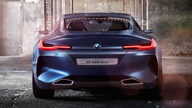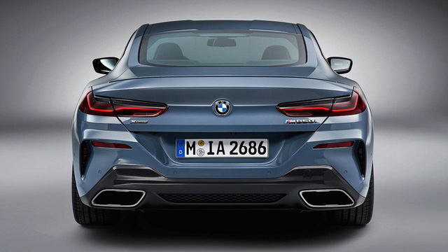 Đuôi xe 8-Series concept được thiết kế theo phong cách tối giản ở cụm đèn hậu và khá hầm hố ở hốc gió sau, cả 2 thiết kế này được dự đoán từ trước là khó lòng được BMW giữ lại và quả đúng là vậy. Nhìn chung thiết kế đuôi 8-Series hoàn chỉnh hiện đại mà không kém phần đẹp mắt so với ý tưởng trước đó – một thành công đáng kể của đội ngũ kỹ sư thiết kế BMW. Ống xả dạng kép được giữ lại nhưng cũng vuông vắn hơn trước.