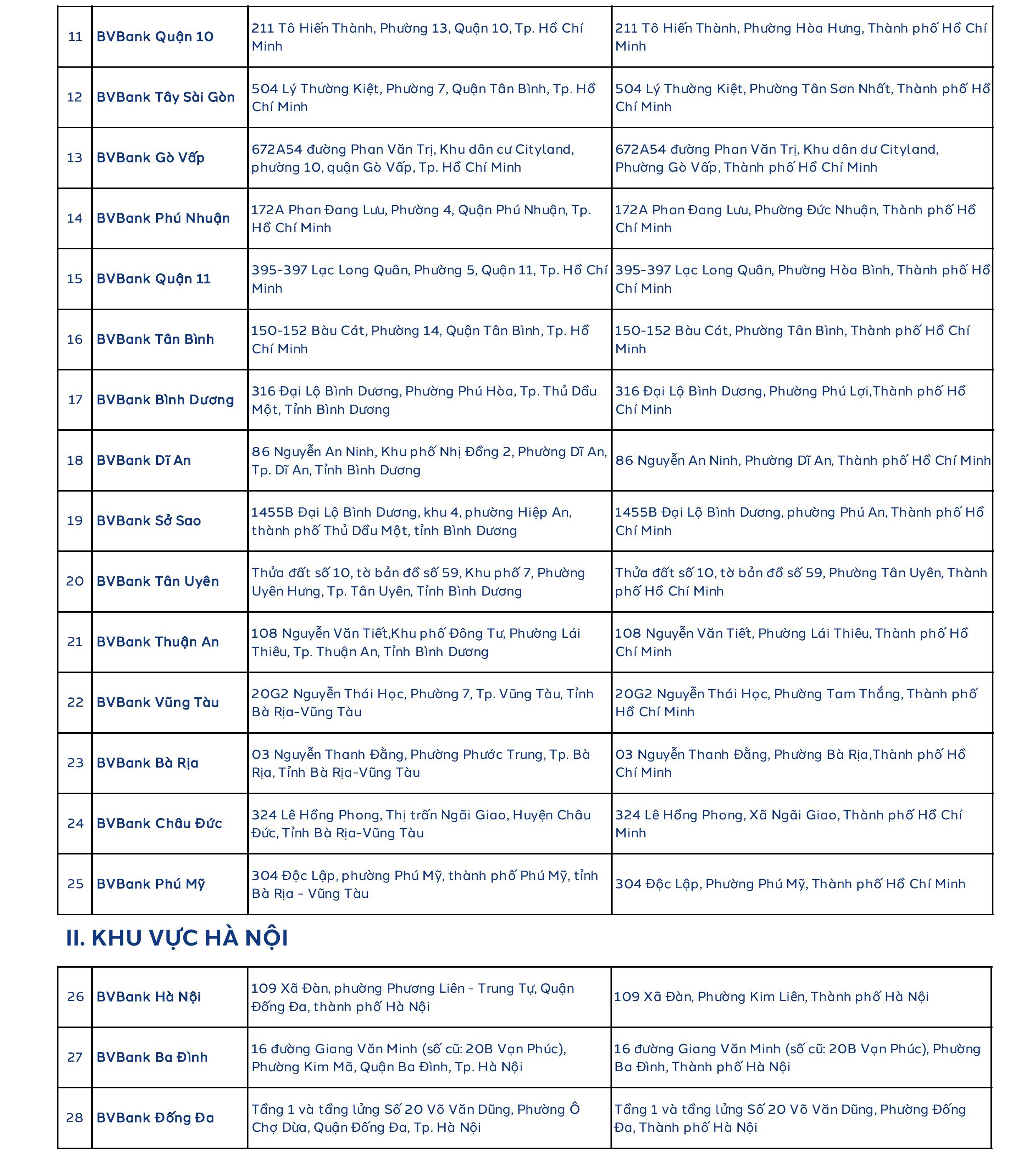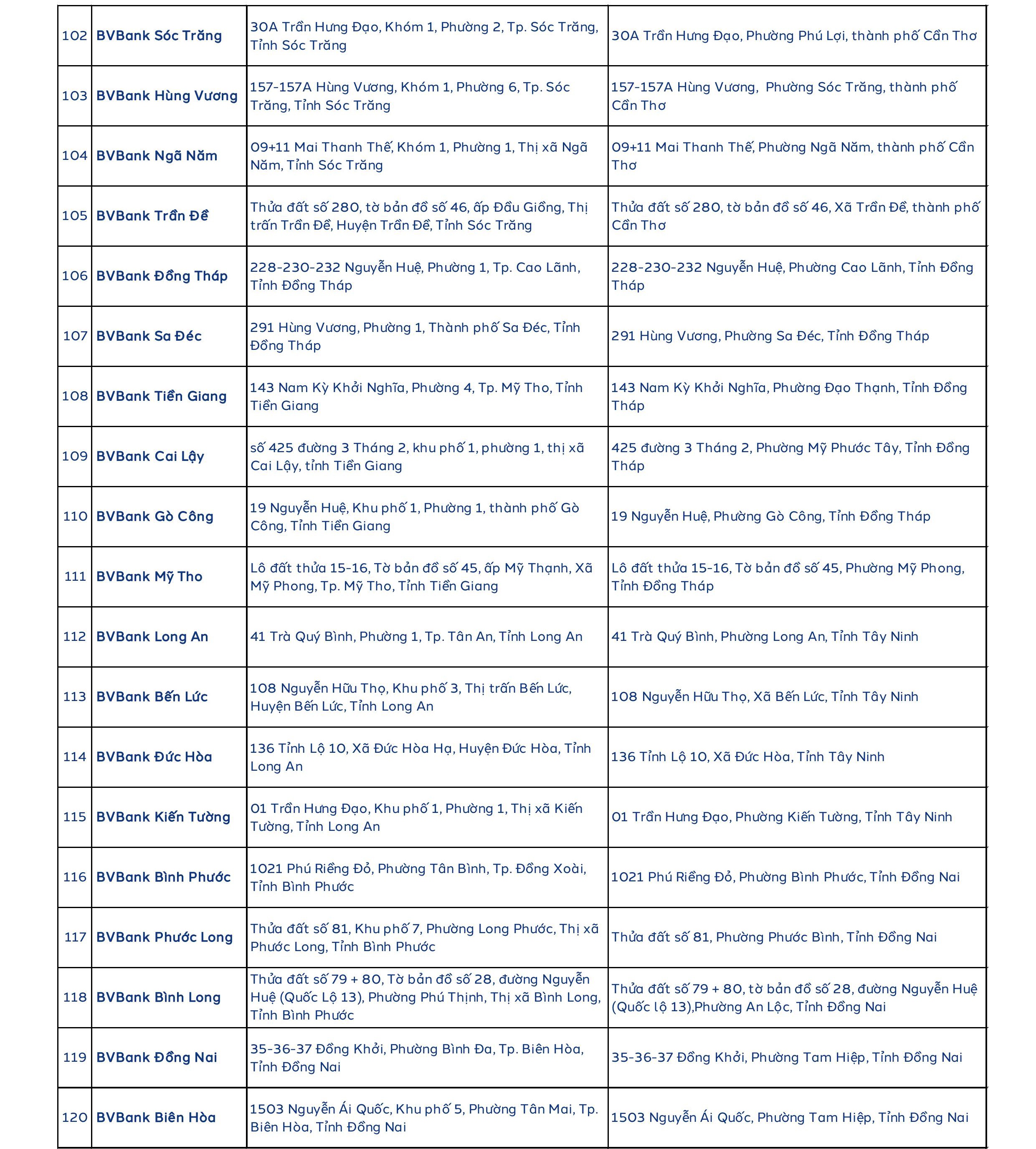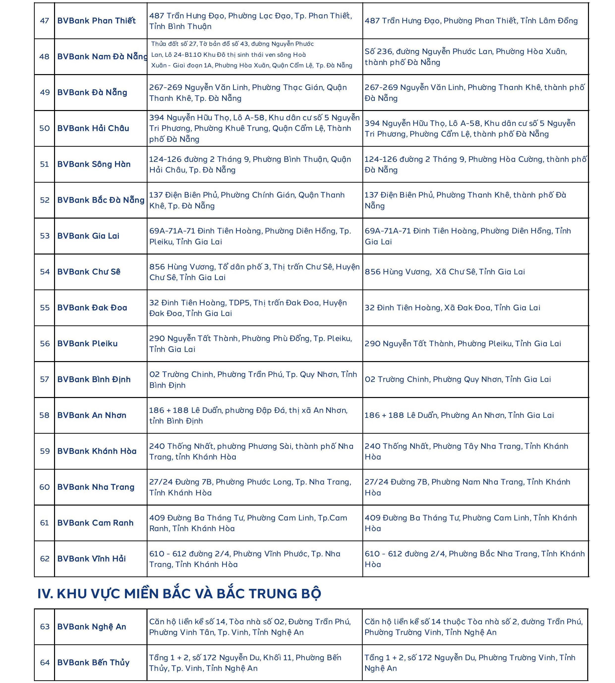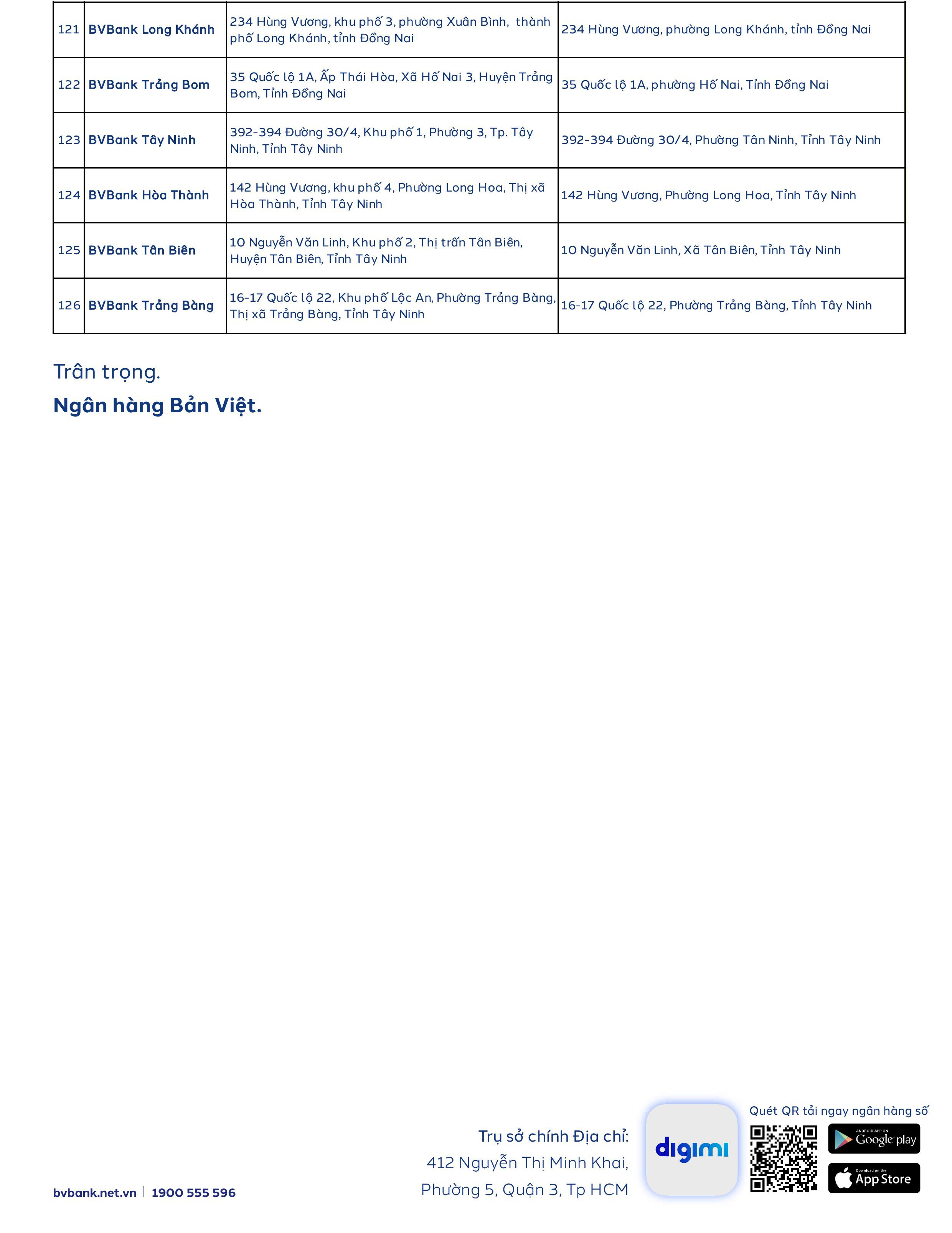 BVBank: Thông báo thay đổi địa chỉ các Chi nhánh và Phòng giao dịch