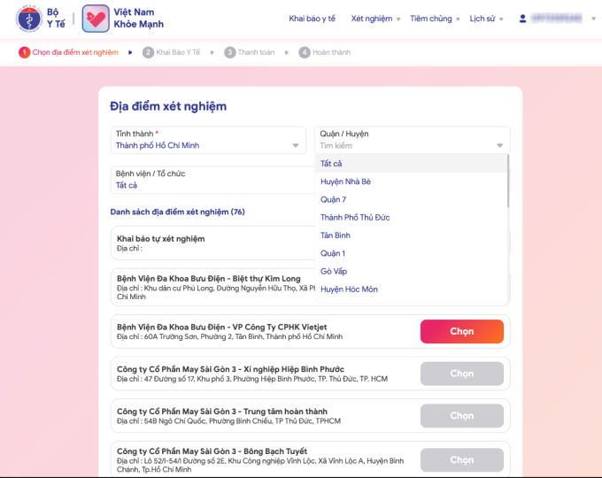 Cách đăng ký và nhận kết quả xét nghiệm Covid-19 trực tuyến