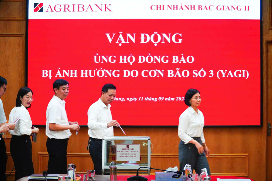 Trước đó, tại Lễ phát động ủng hộ của Ủy ban Trung ương Mặt trận Tổ quốc Việt Nam, Agribank ủng hộ 02 tỷ đồng, cùng ngành Ngân hàng hỗ trợ đồng bào bị thiệt hại do bão số 3. Đến ngày 12/9/2024, toàn hệ thống Agribank đã ủng hộ hơn 17 tỷ đồng hỗ trợ công tác khắc phục hậu quả cơn bão.